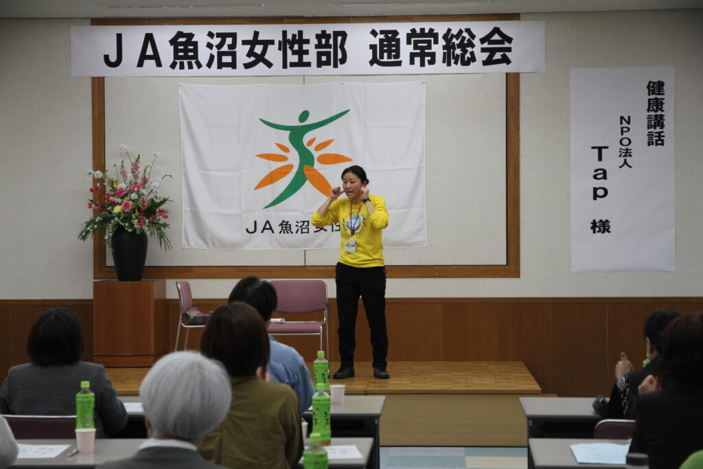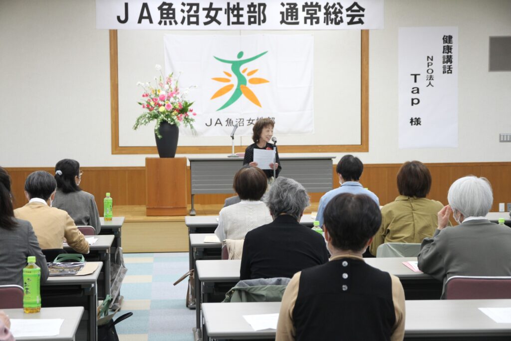 総会後は、津南町を中心に人づくりとまちづくり、健康づくりに取り組む「NPO法人 Tap」から健康講和をしていただきました。
