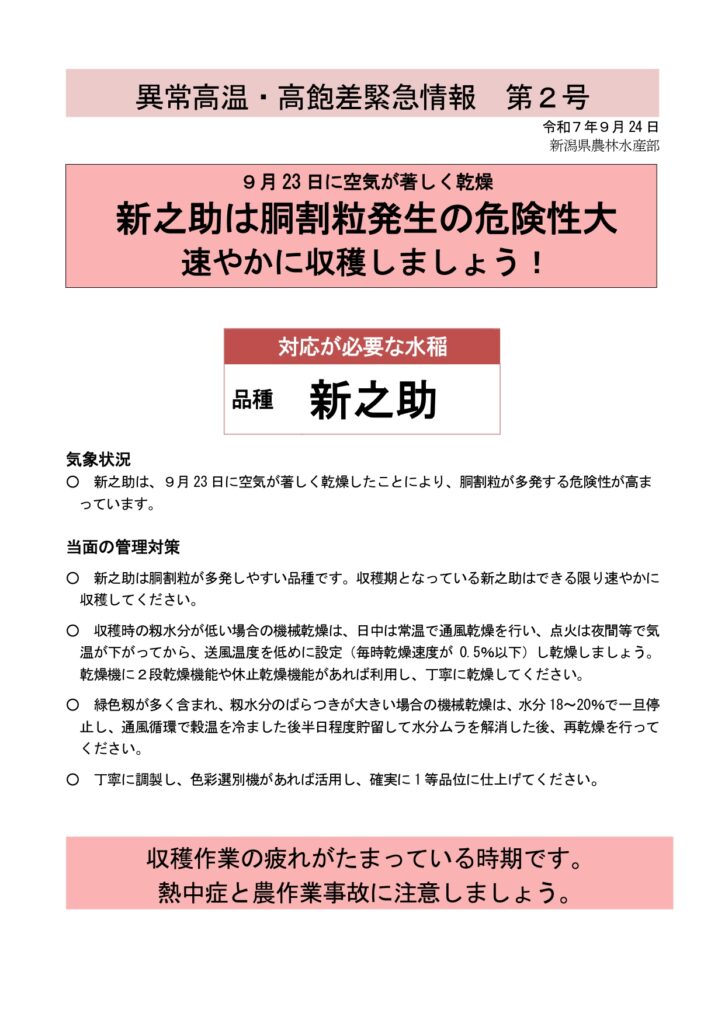 異常高温・高飽差緊急情報(第2号)(対象品種-新之助)-PDFファイル/126KB