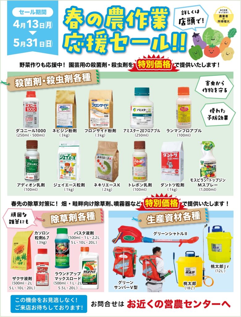 【お知らせ】春の農作業応援セール