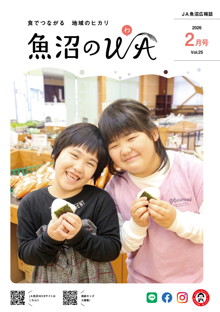JA魚沼では毎月1回、広報誌「魚沼のWA」を発行しています。本店、支店、直売所等にも設置してあります。